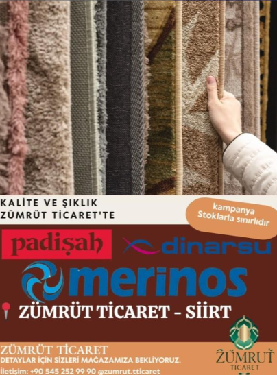 Kurtalan’da halı satın alırken güven, kalite ve uygun fiyat arayanlar için Siirt Zümrüt Ticaret Perde & Halı doğru tercihtir. Firma, müşteri memnuniyetine verdiği önemle, her bütçeye uygun kaliteli ürünleri bir arada sunar. Geniş ürün çeşitliliği, satış sonrası destek hizmeti ve yerel hizmet anlayışıyla bölge halkının güvenini kazanmıştır.